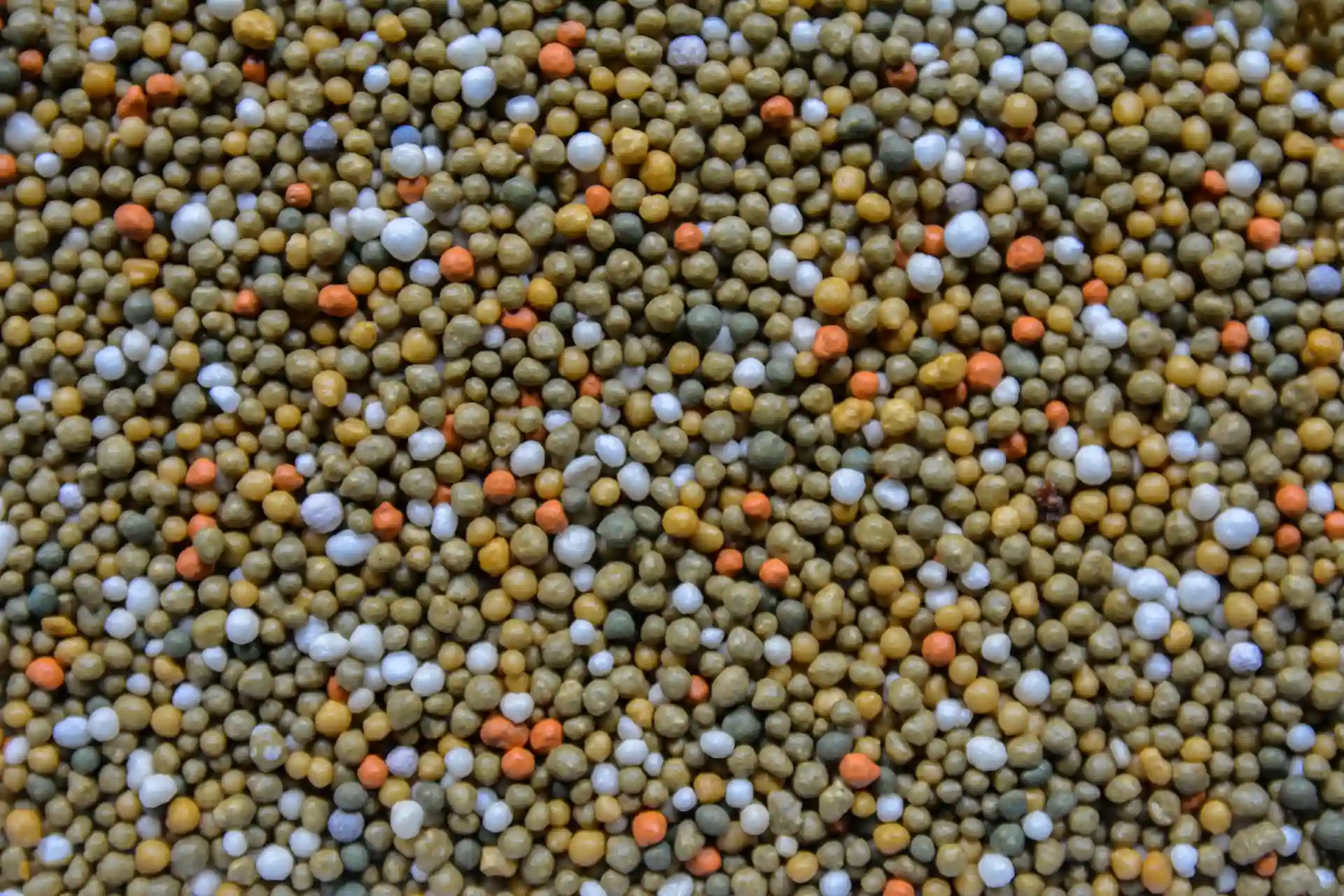 • Tipos de adubos organominerais: grânulos que misturam uma fração orgânica com uma fração mineral.